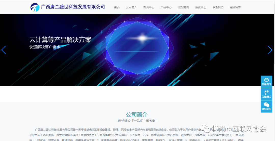广西唐兰盛世科技发展有限公司是一家专业提供:通讯、IT基础设施建设、管理、网络安全产品解决方案和服务的IT企业,公司致力于为用户提供完善的产品解决方案和服务。企业文化企业目标:创新**、做大做强核心理念:真情回馈员工,真诚奉献社会用人理念:人人是才、不拘一格发展理念:整合资源、融资发展、合作共赢、追求完美主营业务。1、通讯:为通讯事业部提供可靠、稳定、专业的通讯工程施工服。务,是各通讯运营商、机关单位、学校、开发商、酒店、地产物业、小区、交通等行业战略合作伙伴。2、IT基础设施:UPS配电、精密空调、环境监控、微模块解决方案。3、机房集中控管:数字KVM和审计、带外管理、智能PDU、可视化管理。4、网络安全:入网规范管理(准入控制)、终端桌面安全管理、下一代防火墙、防病毒网关、IPS入侵防御系统、上网行为管理、抗DDOS攻击和清洗等安全产品解决方案。5、云IT:云桌面、协同办公、高清云视频会议、云计算等产品解决方案。 公司以“新科技.心服务”为核心理念,致力为客户提供***企业信息化和电子商务解决方案及相关咨询、培训和实施服务。公司视服务为企业生命,视客户为企业之本,以“成功地帮助了顾客=成功地发展了自己!”为企业服务宗旨,努力提升服务水平。我们以优秀的服务为客户节约成本、创造价值,赢得了广大客户的信赖与支持。愿与广大客户携手前进,共创辉煌!协会官网:www.lzsis.cn